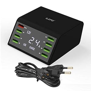 60W Caricatore USB Presa Multipla, QC 3.0 Caricabatterie 8 Port USB Chager with LCD Display per iPhone, iPad, Samsung…