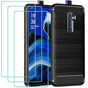 iVoler Cover per Oppo Reno2 Z/Reno 2Z / Oppo Reno2 F/Reno 2F con 3 Pezzi Pellicola Vetro Temperato, Fibra di Carbonio…