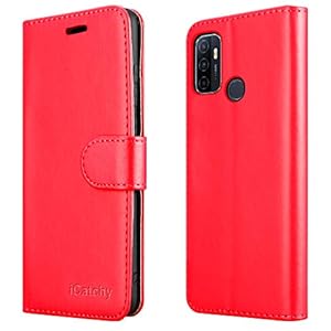 iCatchy – Custodia a portafoglio in pelle per Oppo A53, colore: Rosso